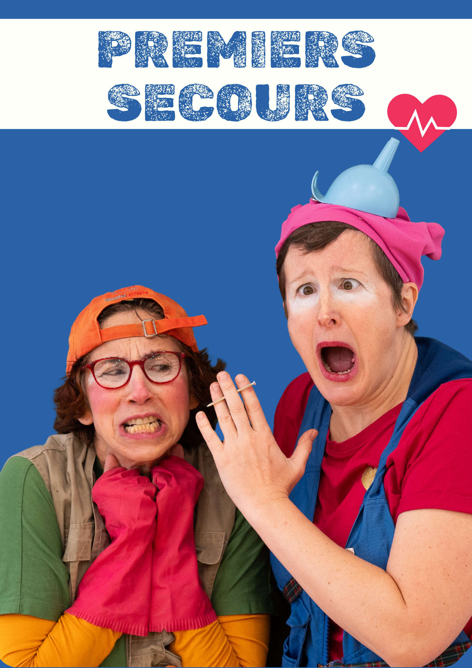 Calamita et Maam Zèle Excelle ont un objectif : accrocher dans toutes les classes de l’école une affiche sur les gestes qui sauvent. Pleines de bonne volonté, mais pétries de maladresses, elles se retrouvent à devoir faire face à des situations d’urgence inattendues. Un spectacle ludique et pédagogique qui sensibilise les élèves et les adultes aux gestes qui sauvent !